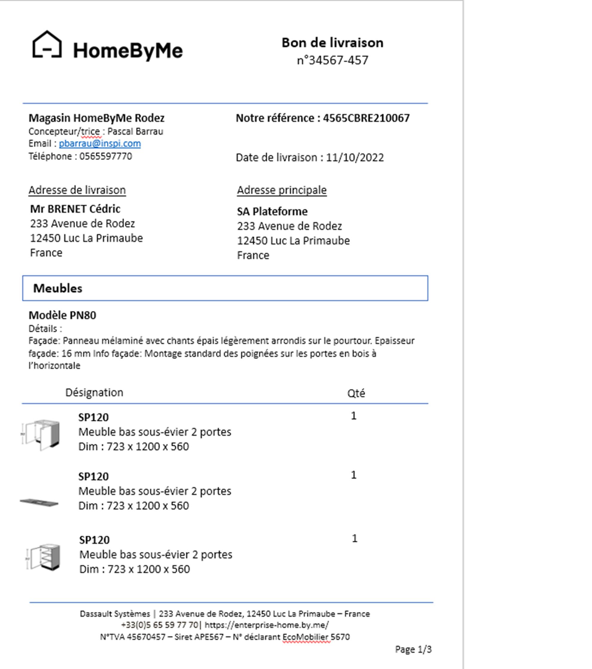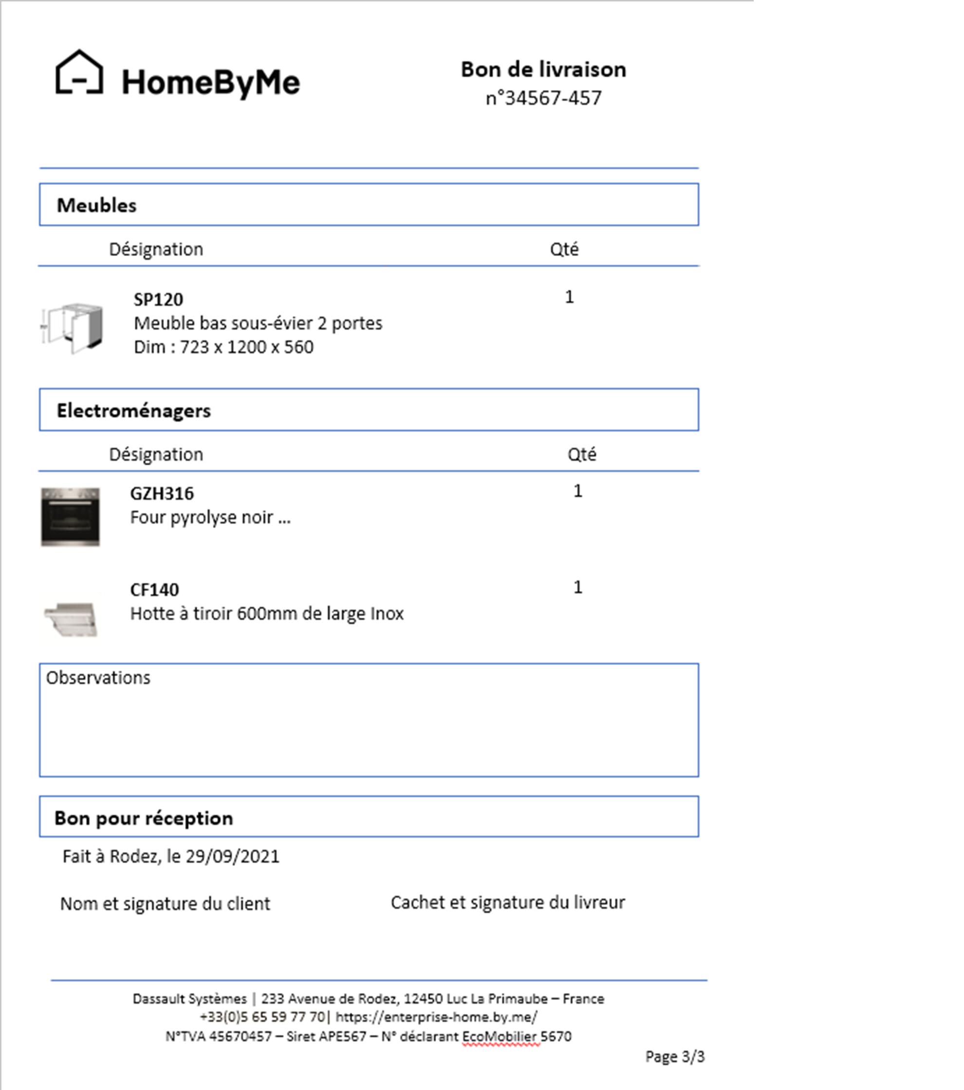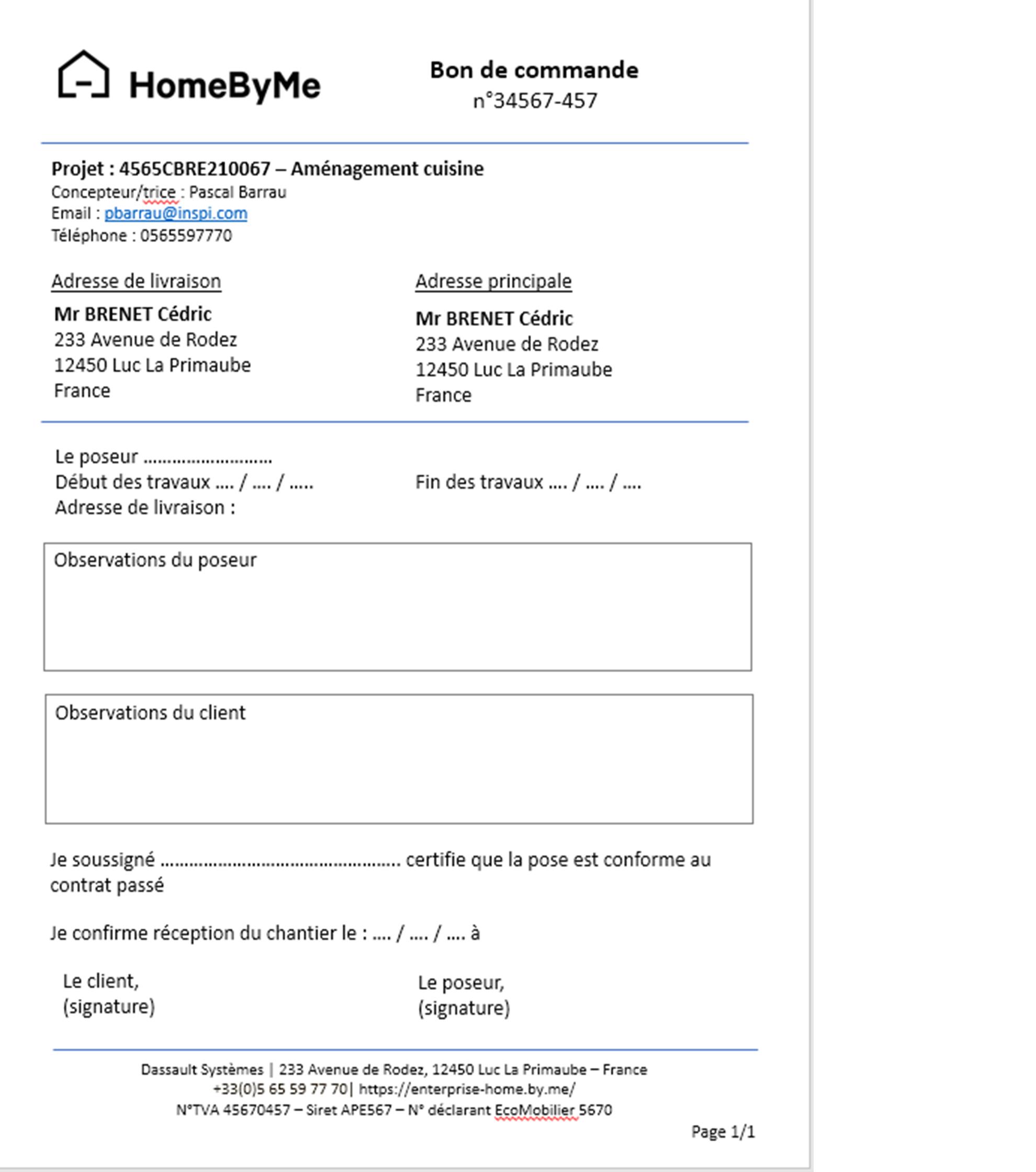 The certificate of measurement confirms the visit of the quantity surveyor to the customer's home. It can be printed at the level of the quote and the customer purchase order.