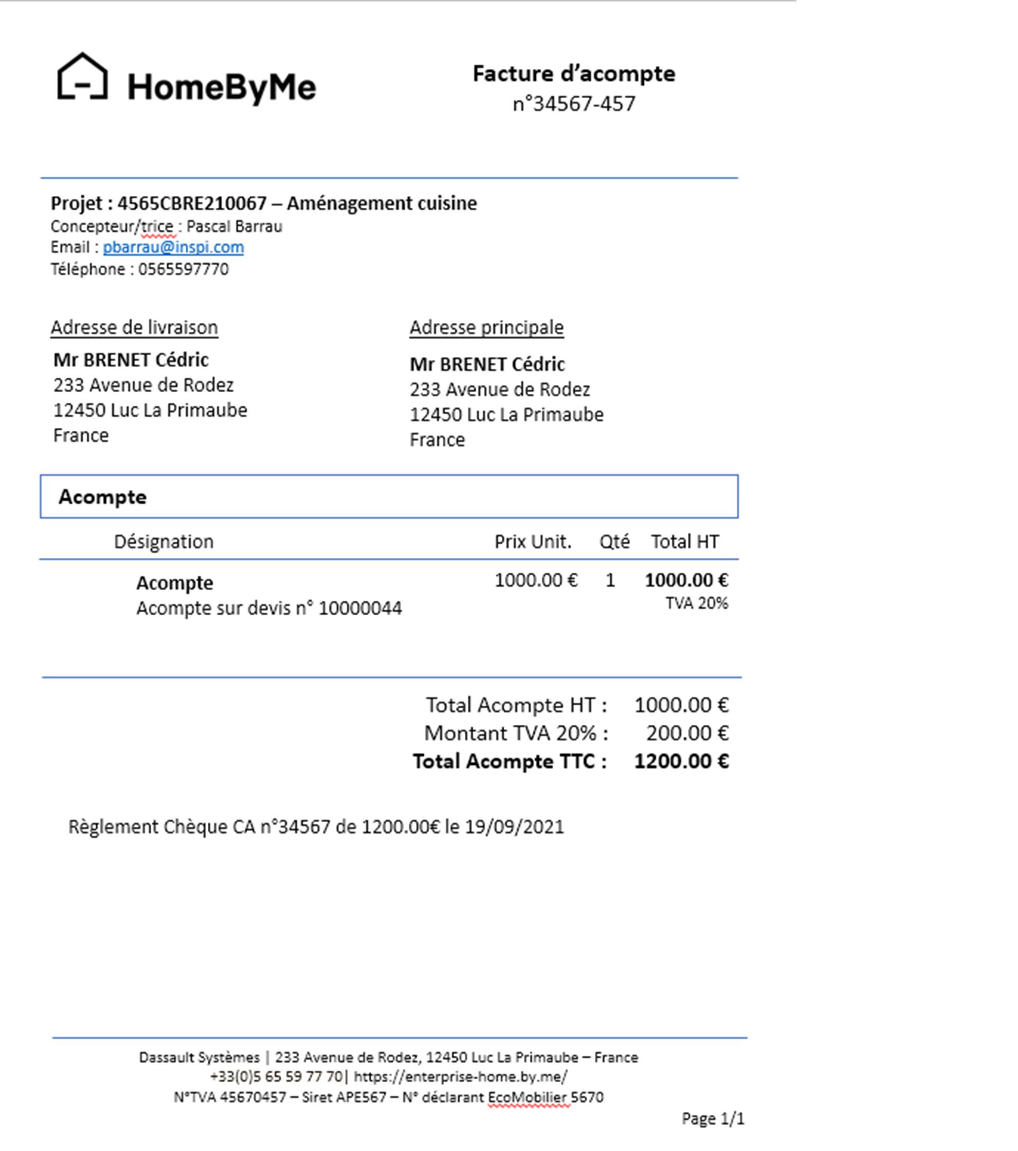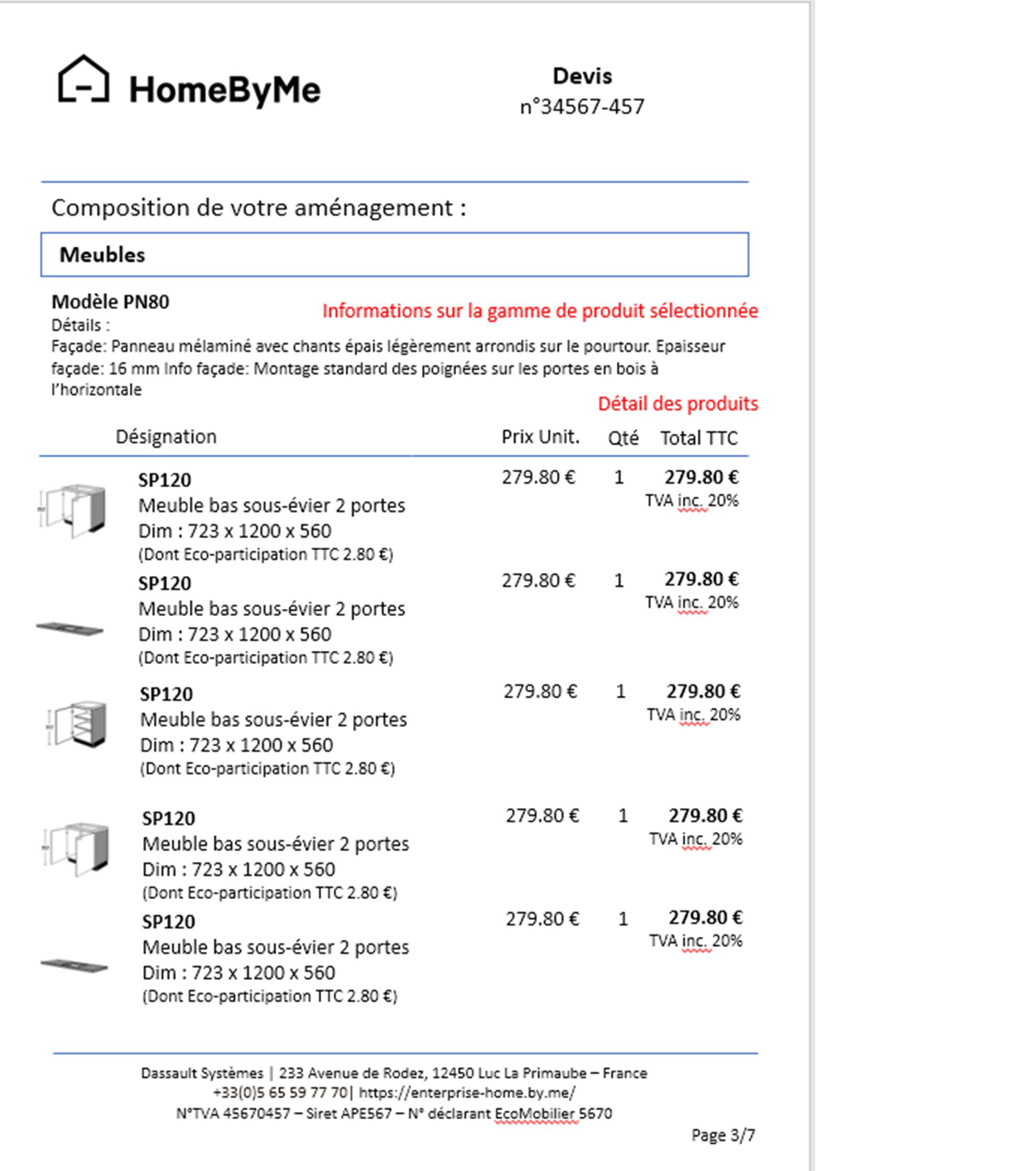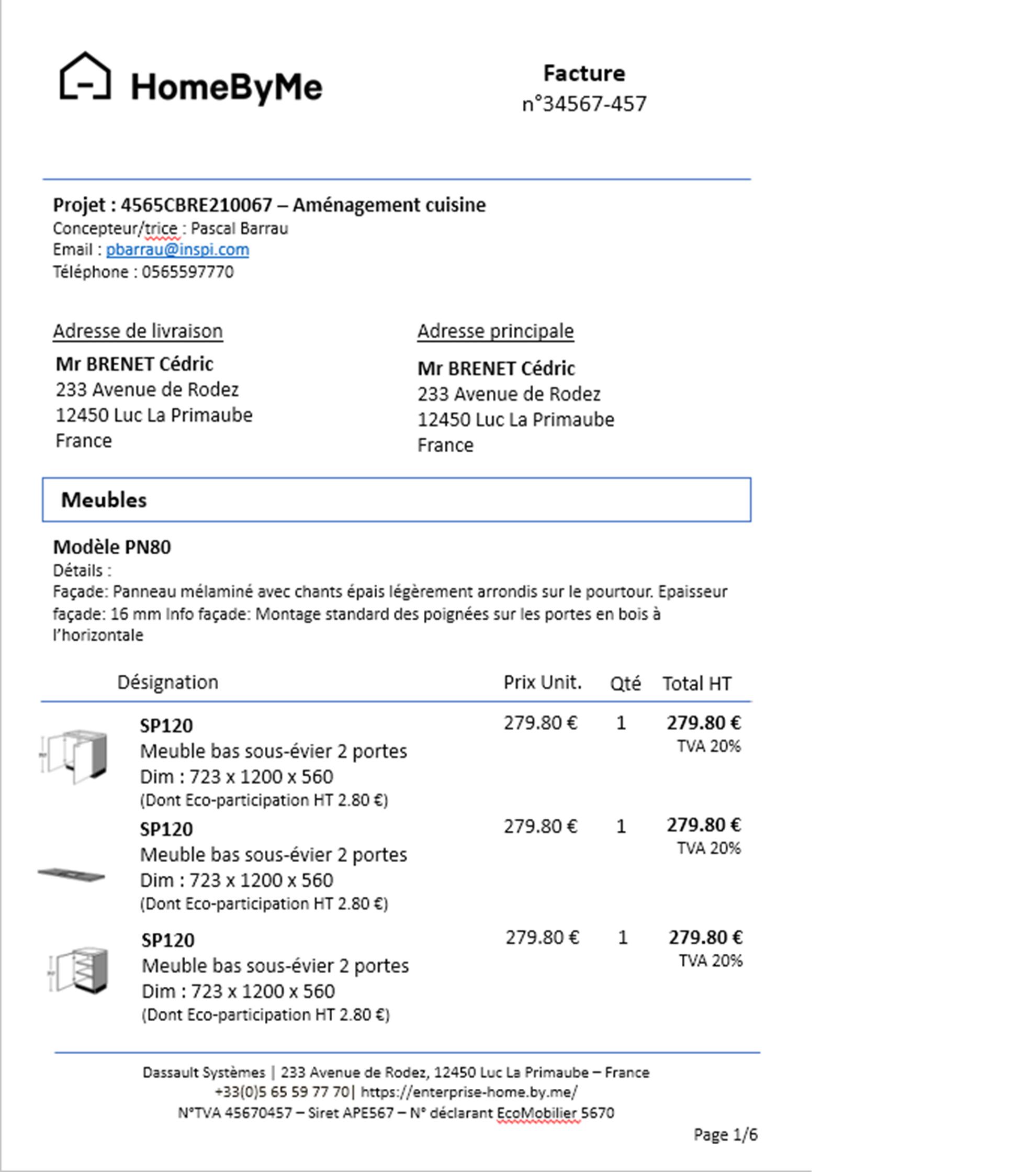 The certificate of measurement confirms the visit of the quantity surveyor to the customer's home. It can be printed at the level of the quote and the customer purchase order.
