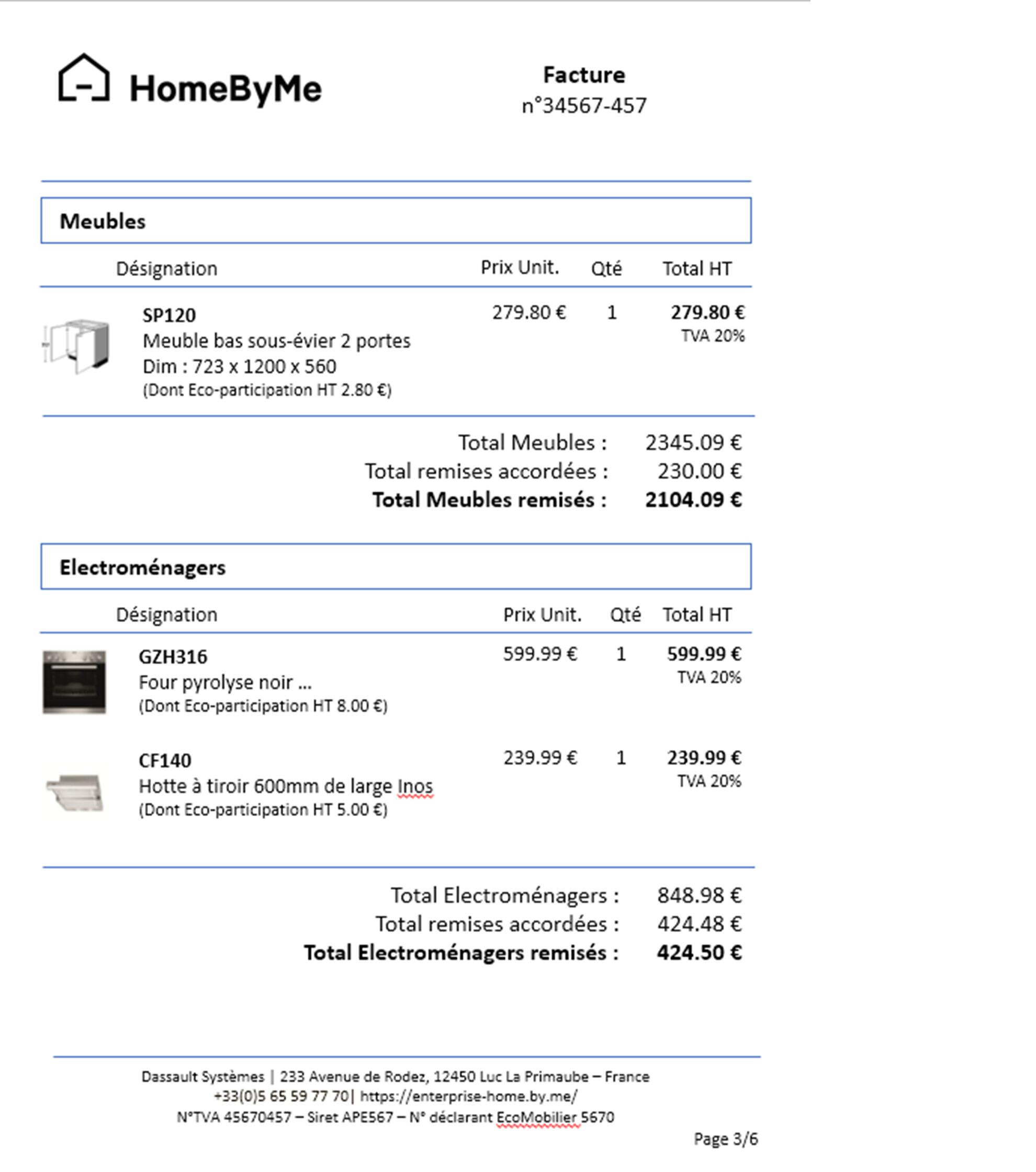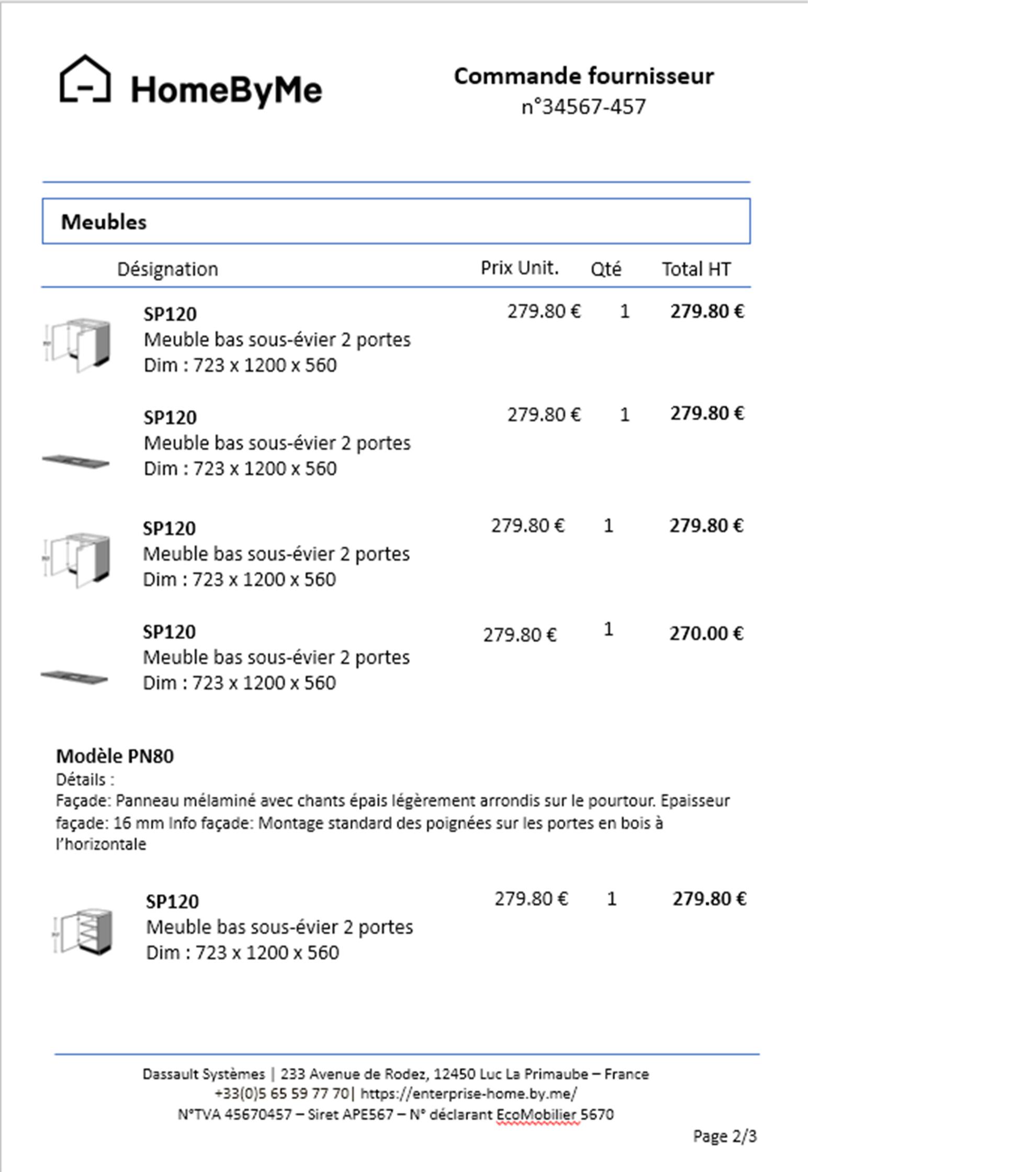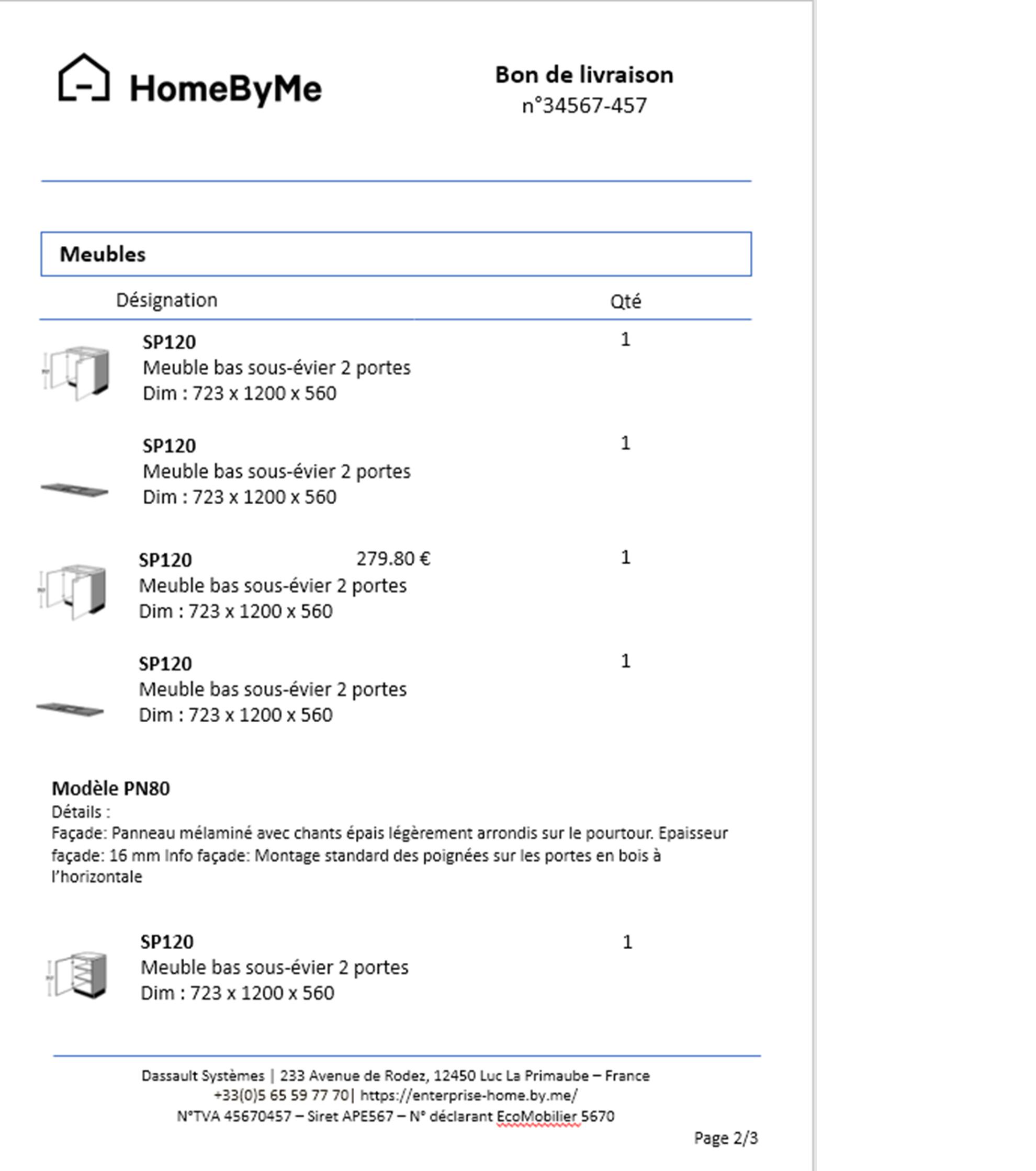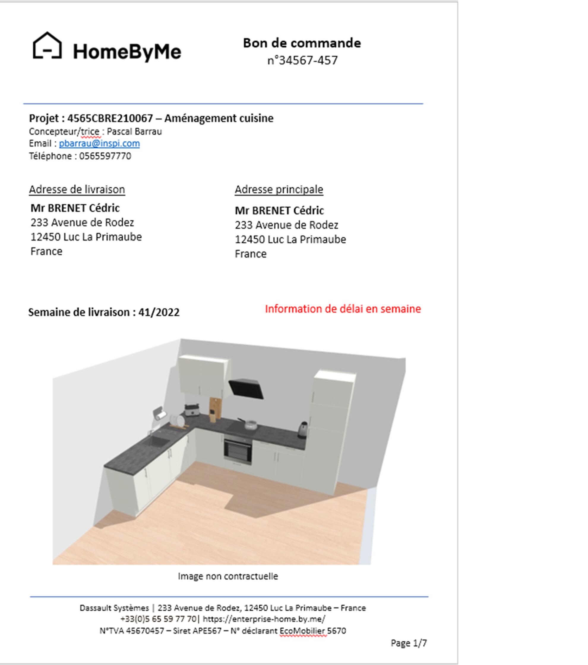 The customer order has the same presentation as the quote, the “validity date” information is replaced by the “delivery week”.