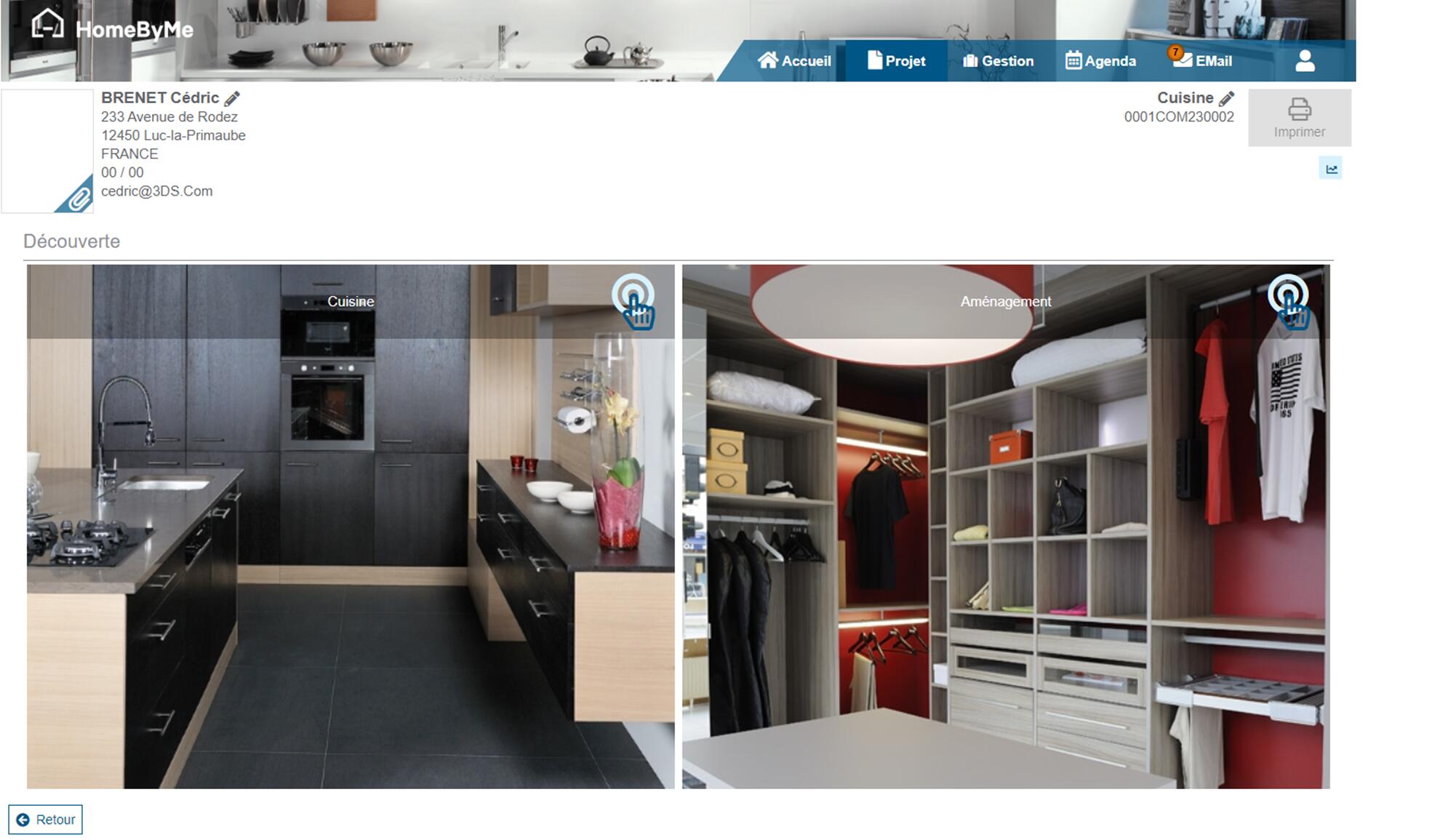 Once the project is named, we arrive at the entry of the discovery of the client's need. By default, the application offers two discoveries: kitchen project and closet project.