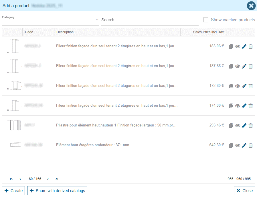 The icons on the right allow you to duplicate, consult, modify or disable the selected Product from the list. An additional may also allow you to create a new one. All these functionnalities depend on your access rights.