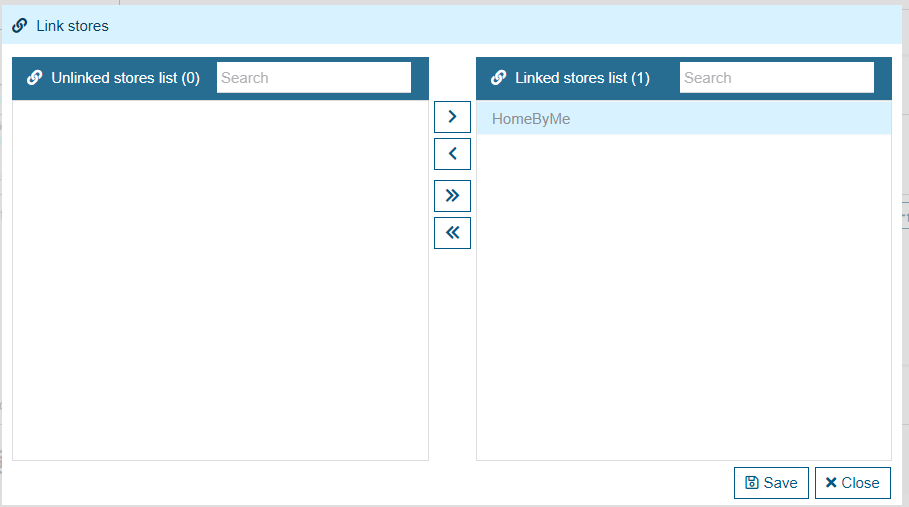 You can also choose which stores you want to link this user to. For this, you will need to use the arrows in the middle to move the stores. On the right side, there will be the stores to which the user is linked and therefore has access. You can use these two pieces of information later to modify the user’s role or to modify their linked stores.