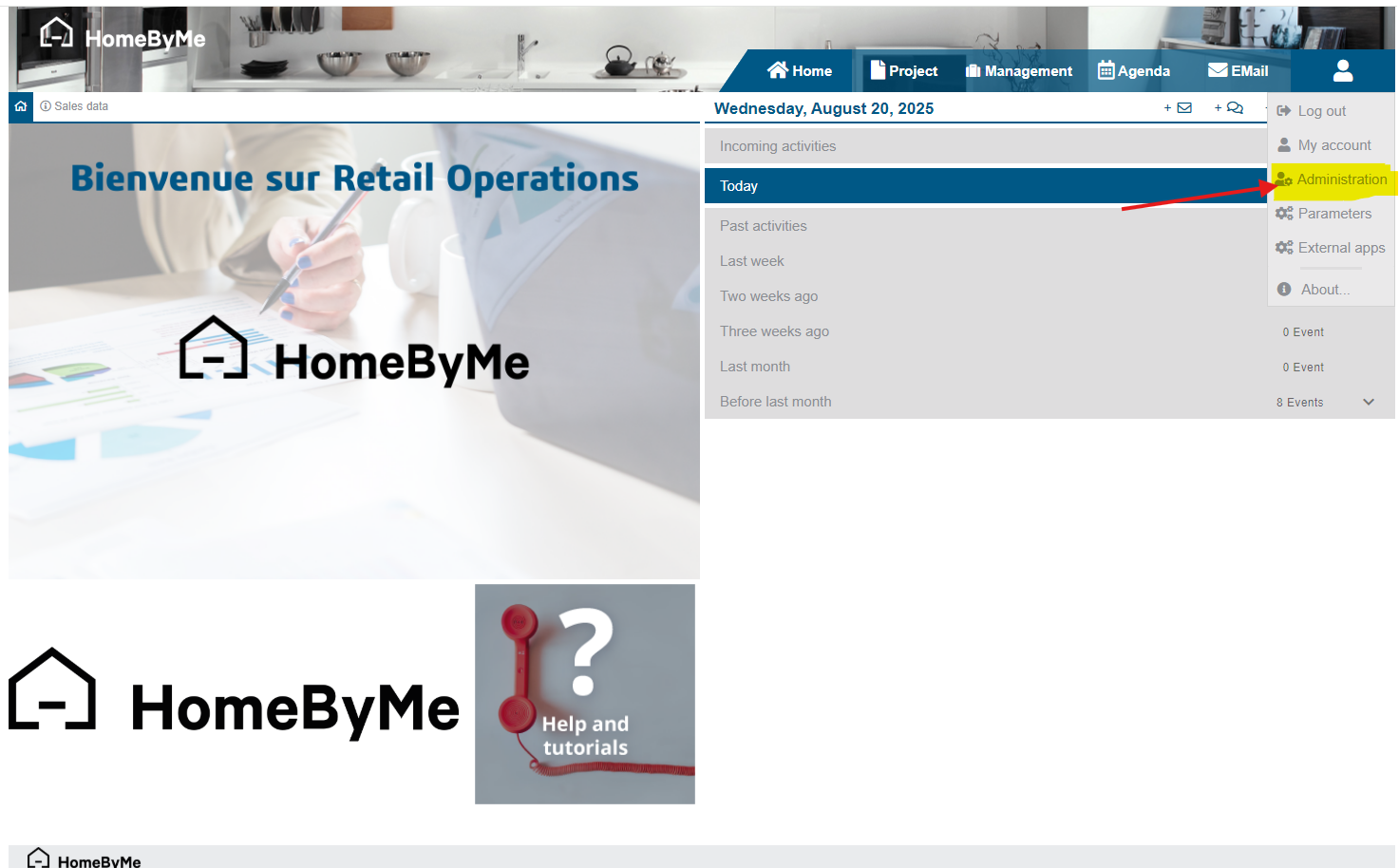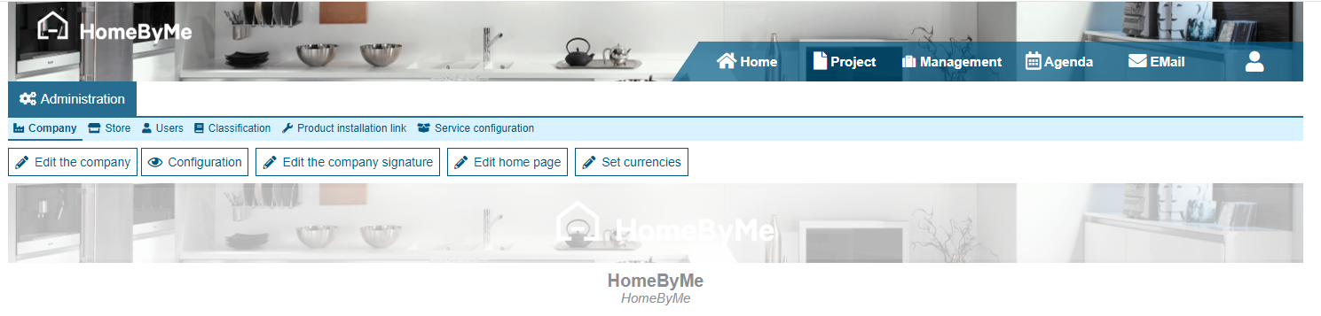 The Administration menu groups all settings directly related ith your company structuration.