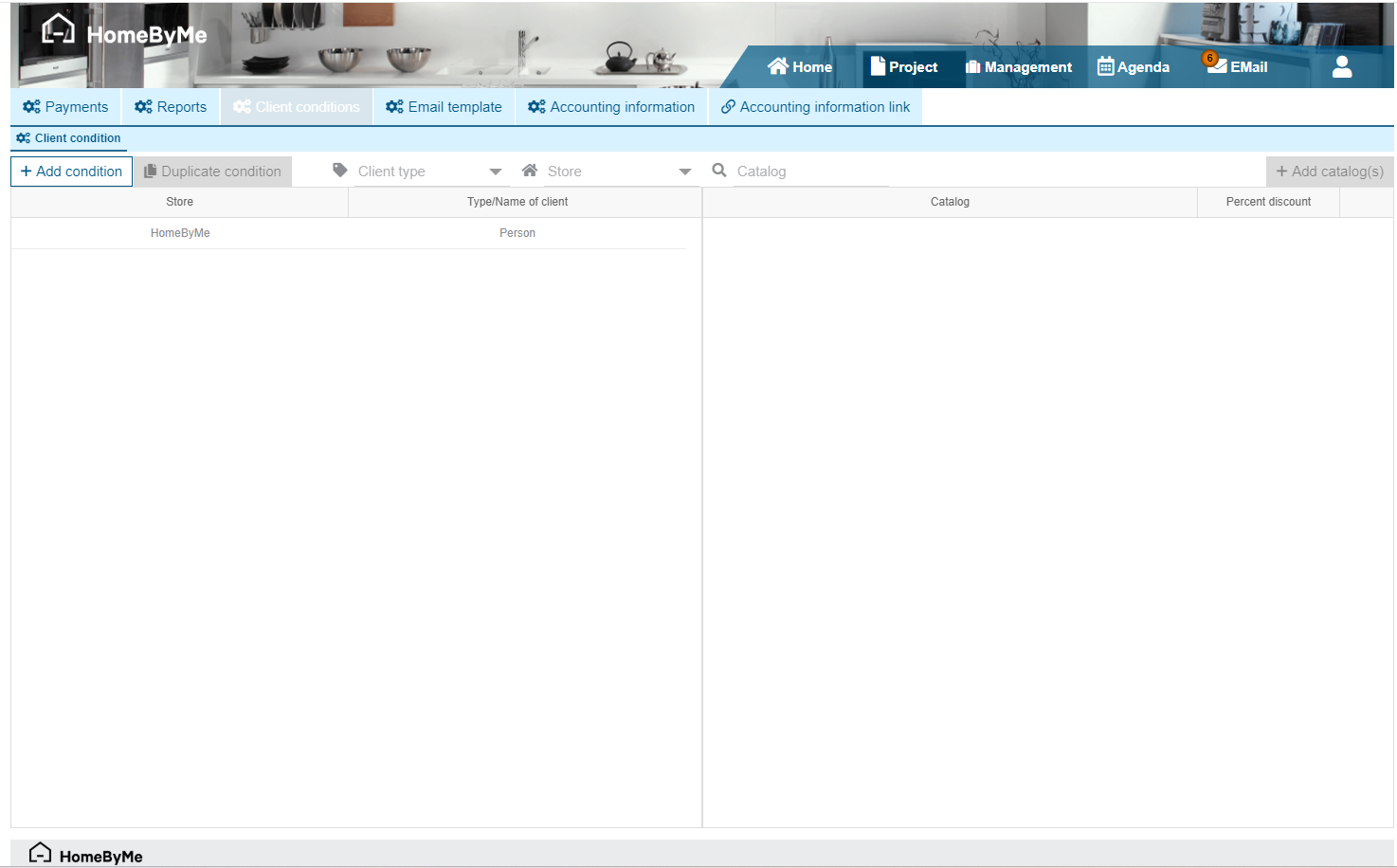 It is possible to set commercial conditions by catalog for professional customers. These conditions correspond to discounts that are applied automatically according to the type of customer (craftsman, builder, etc.).