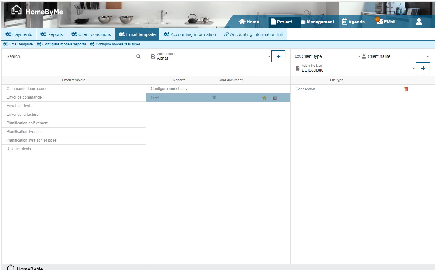 It is possible to define an email template to use for each reporting. Via the interface provided for this purpose, you can choose the edition, the email template(s) to associate as well as the type of files to automatically attach.