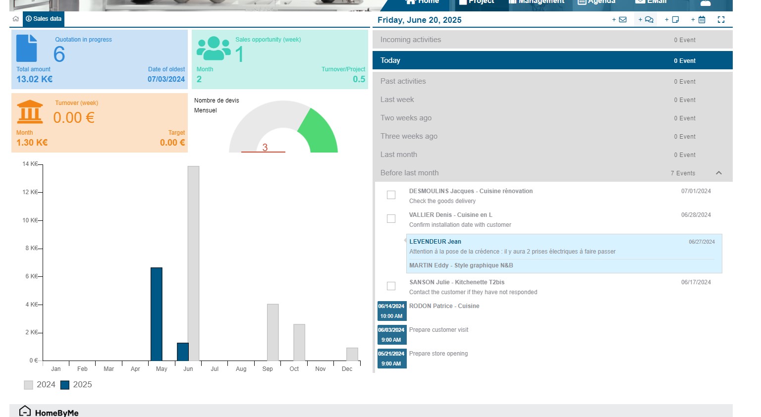 - The turnover achieved over the week, the turnover achieved over the month and the turnover objective over the month