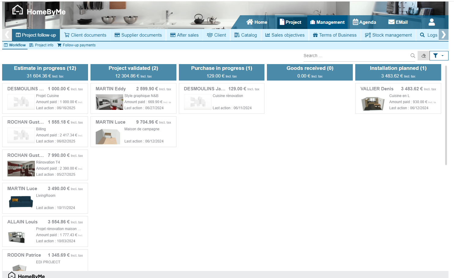 Some menus may be hidden if the access to the functionality has been blocked for the user in the rights management screen.