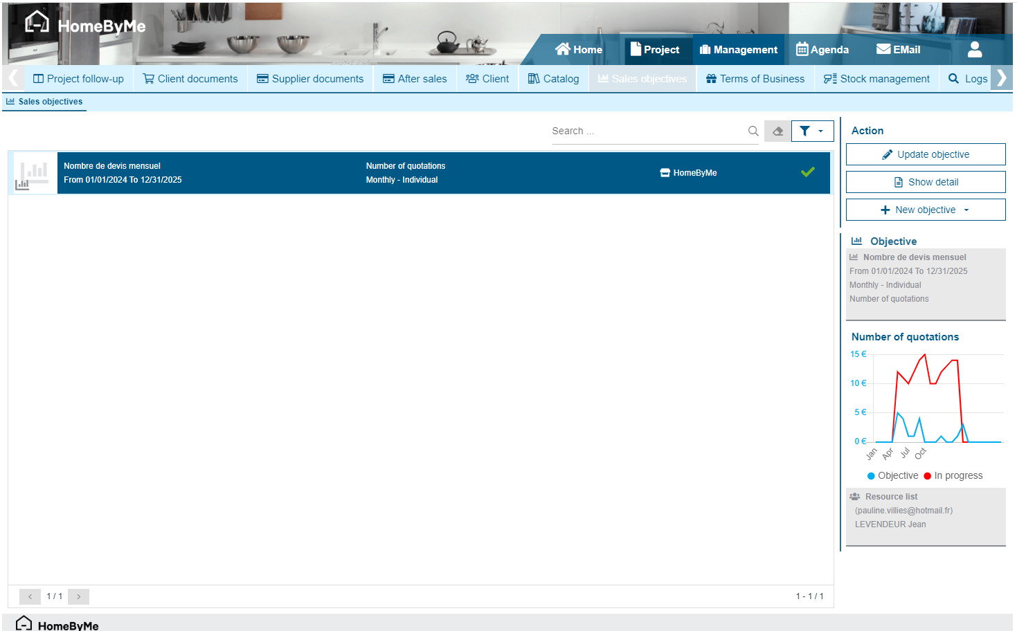 Once a goal has been created, you can view its details. Thus, you can see a grid with a reminder of the goal and then below, according to the criteria, the values achieved and the goals set.