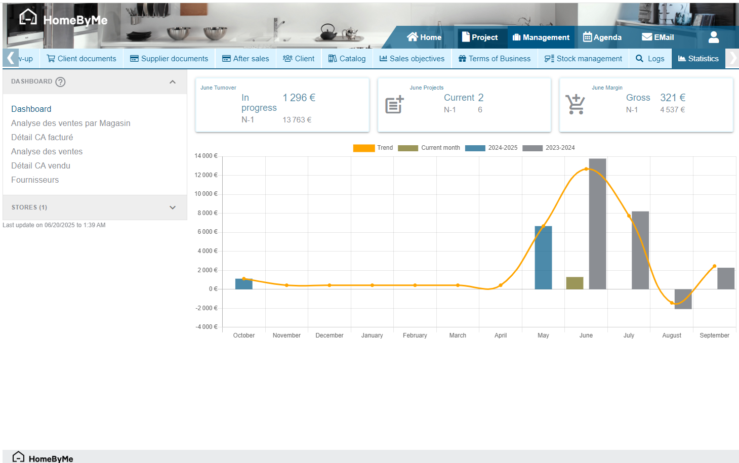 - A trend curve allows you to project yourself over the three months to come according to the evolution of the current turnover.