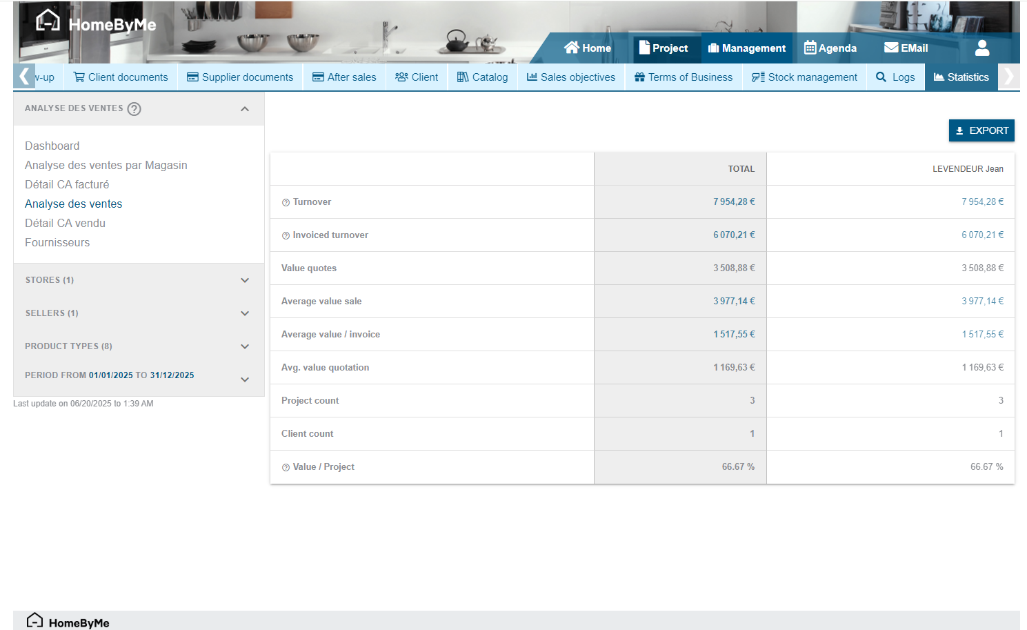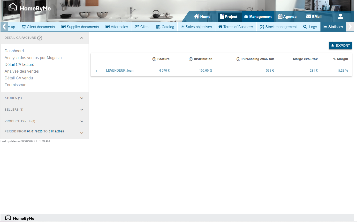 The details of the invoiced turnover allow you to consult detailed information on the invoiced projects. The accessible information is: