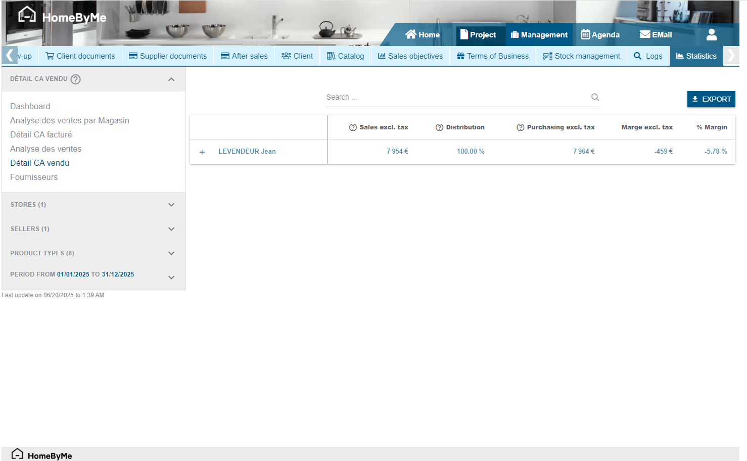 The breakdown of the turnover sold allows you to consult detailed information on the projects sold. The information accessible is: