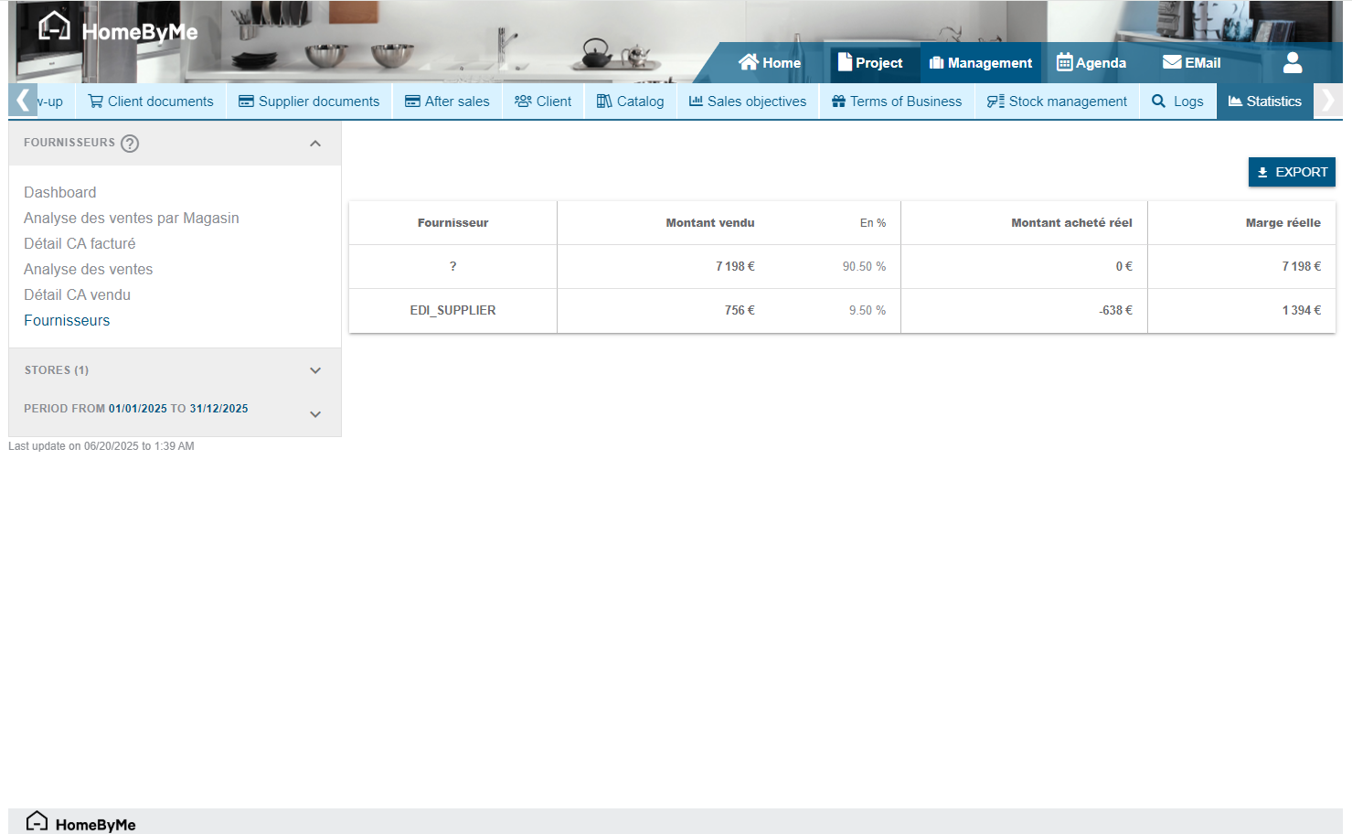- Master franchise level: the user has a view of the data of all the company's stores (even if he does not have access to the other data of these stores)
