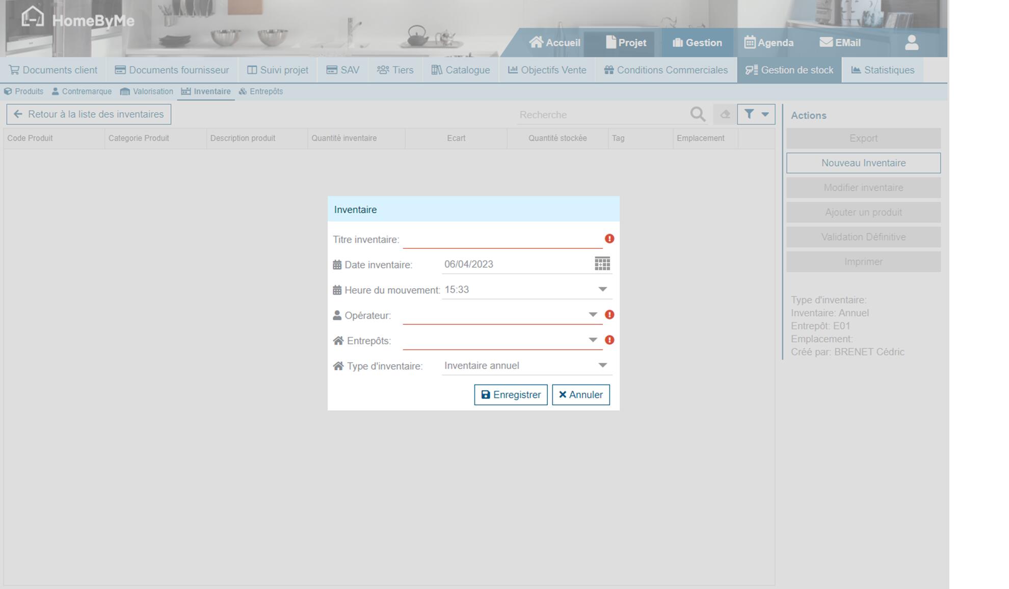 To start using inventory management, you must first create a storage warehouse via the “Management/Inventory management/Warehouses” menu.