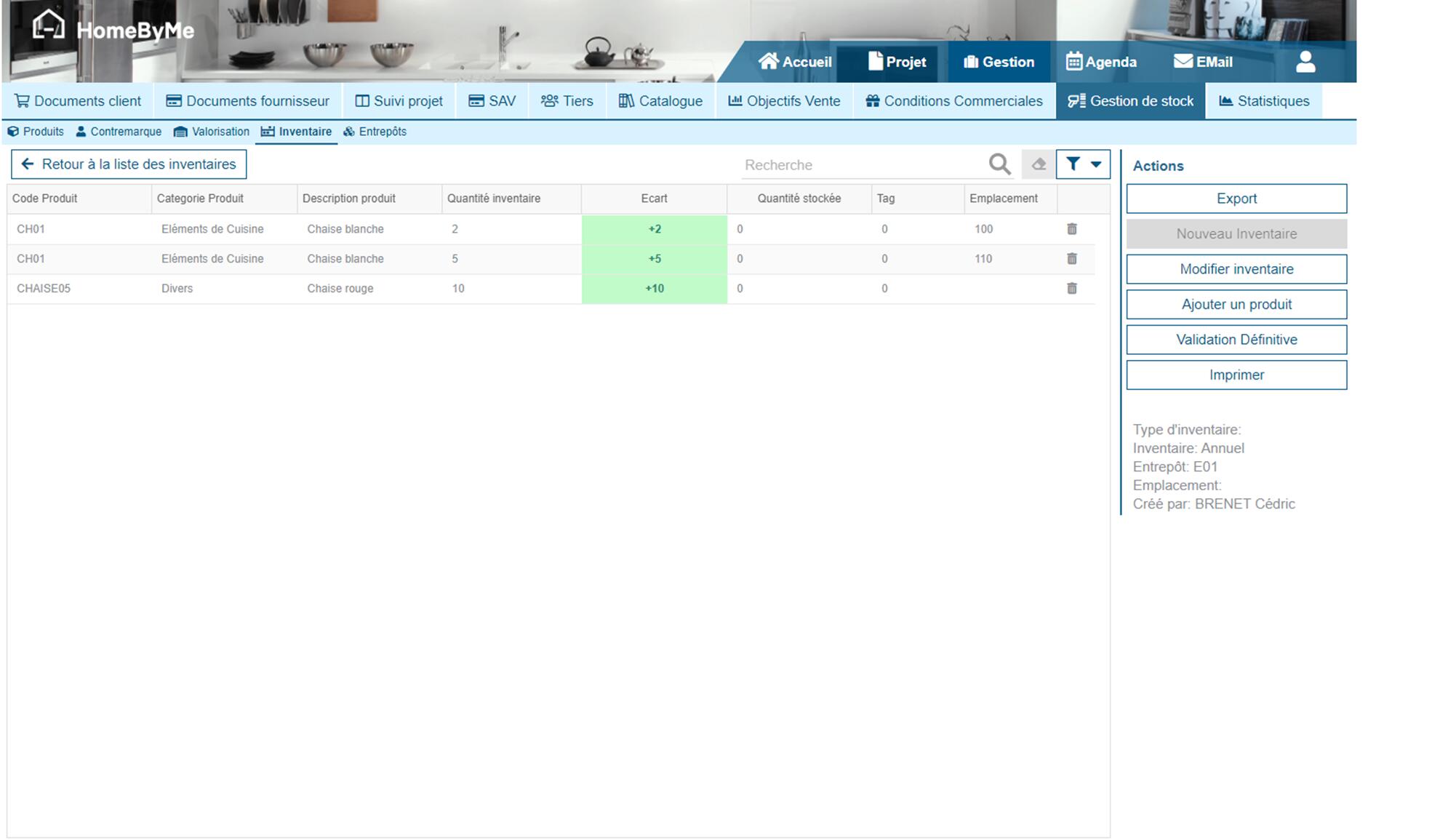 The “gap” information allows you to visualize the difference between the quantity entered and the quantity identified in stock of the products. This functionality will be used during annual inventories in order to highlight anomalies.
