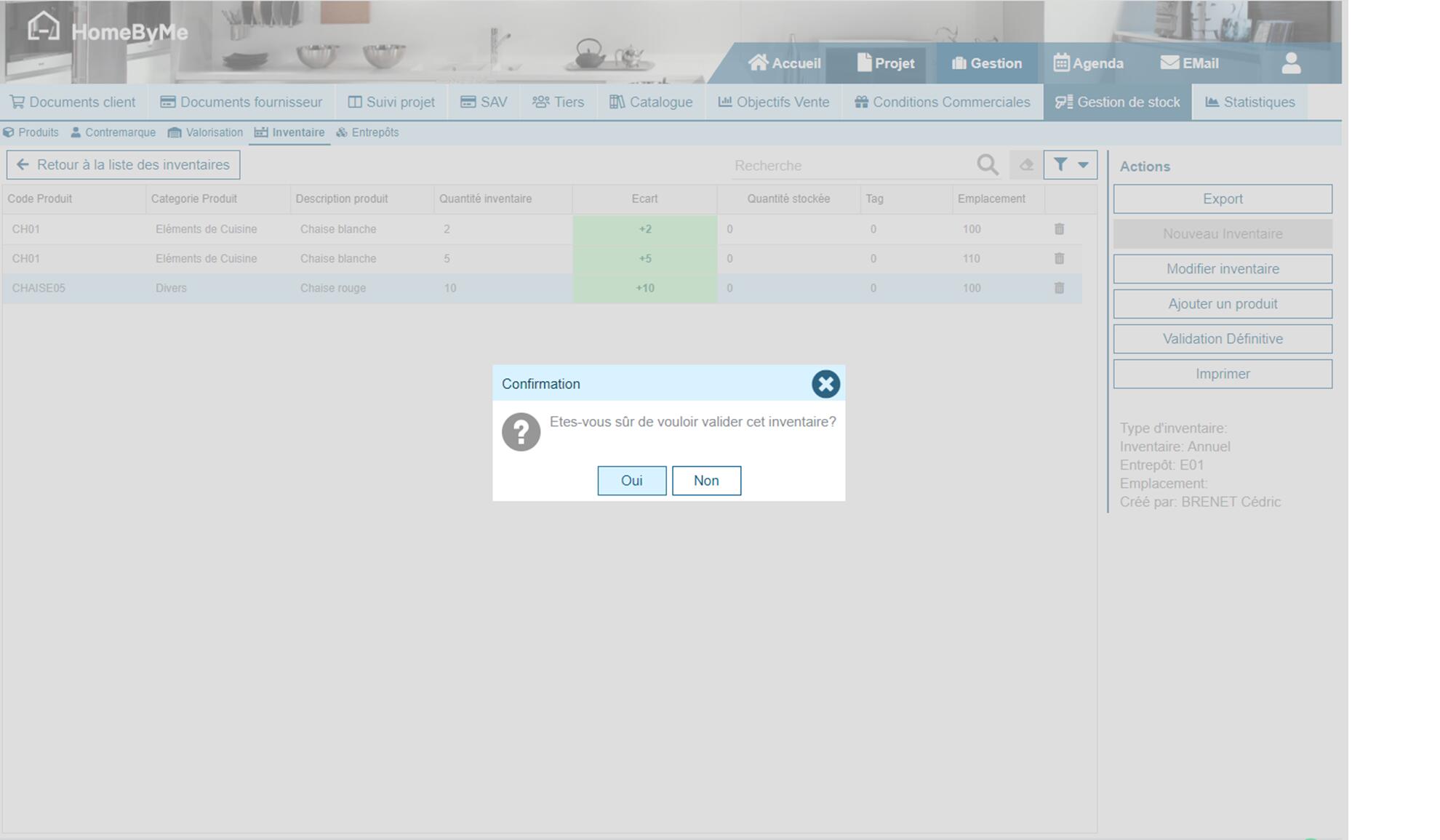 Once the entry is complete, you can validate the inventory by selecting “Final validation”. Until this action is done, the inventory information is not taken into account and you can navigate in the application and return to this screen.