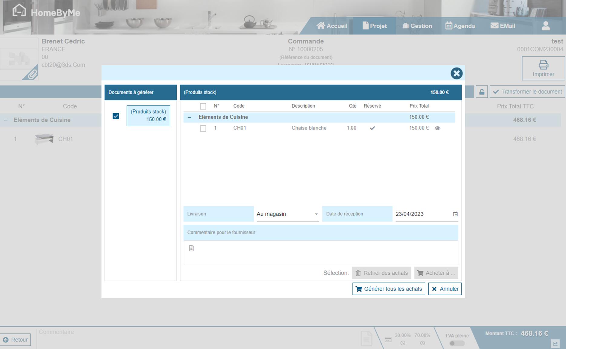When creating supplier orders, if the product has been indicated as reserved, it will be automatically taken from stock. In this case, the supplier name will be replaced by "Stock product" and its price will be calculated according to the weighted average cost of the product (WAC).