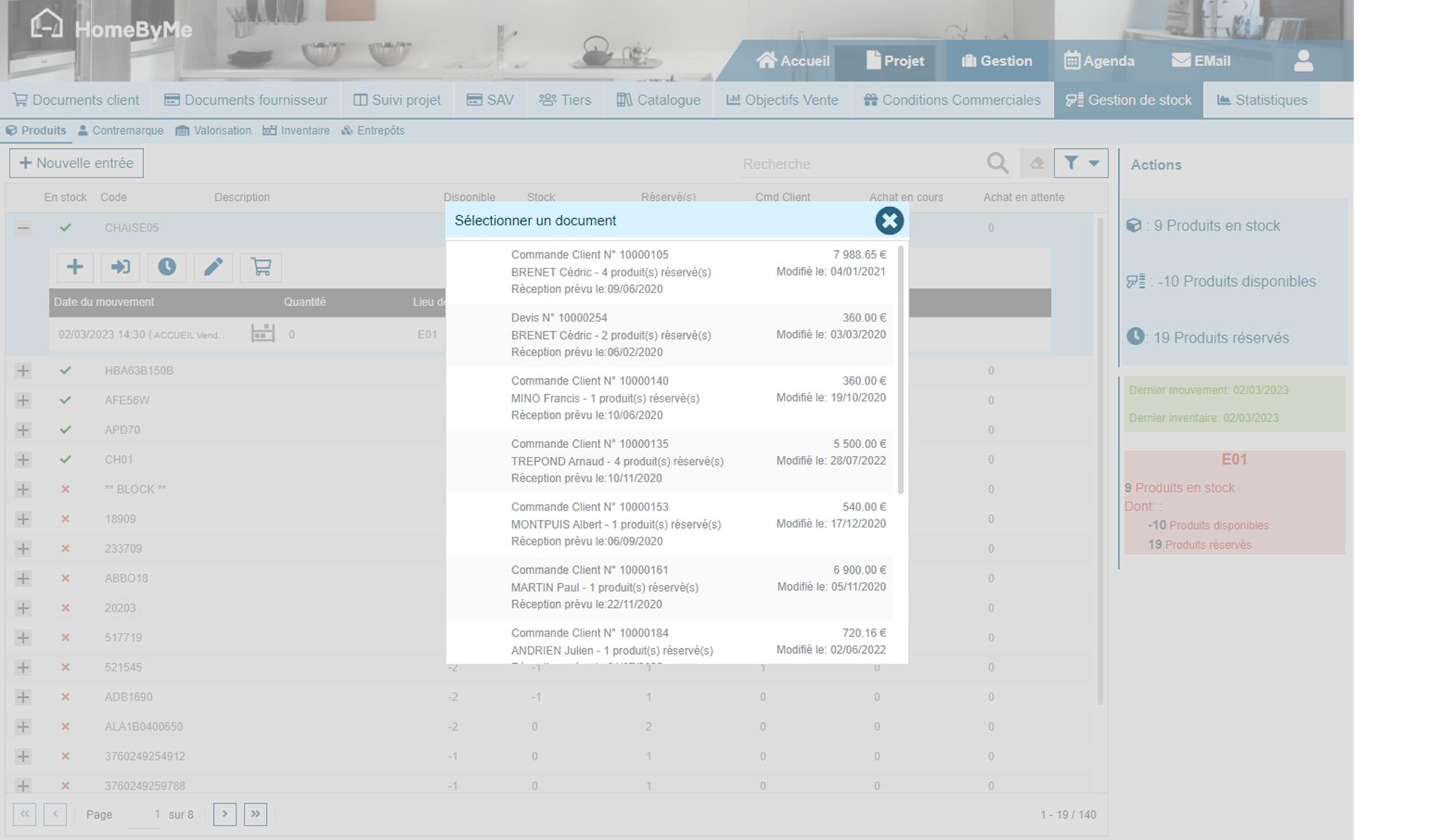 By clicking on the quantity reserved at the product level, it is also possible to have the list of reservations linked to this product
