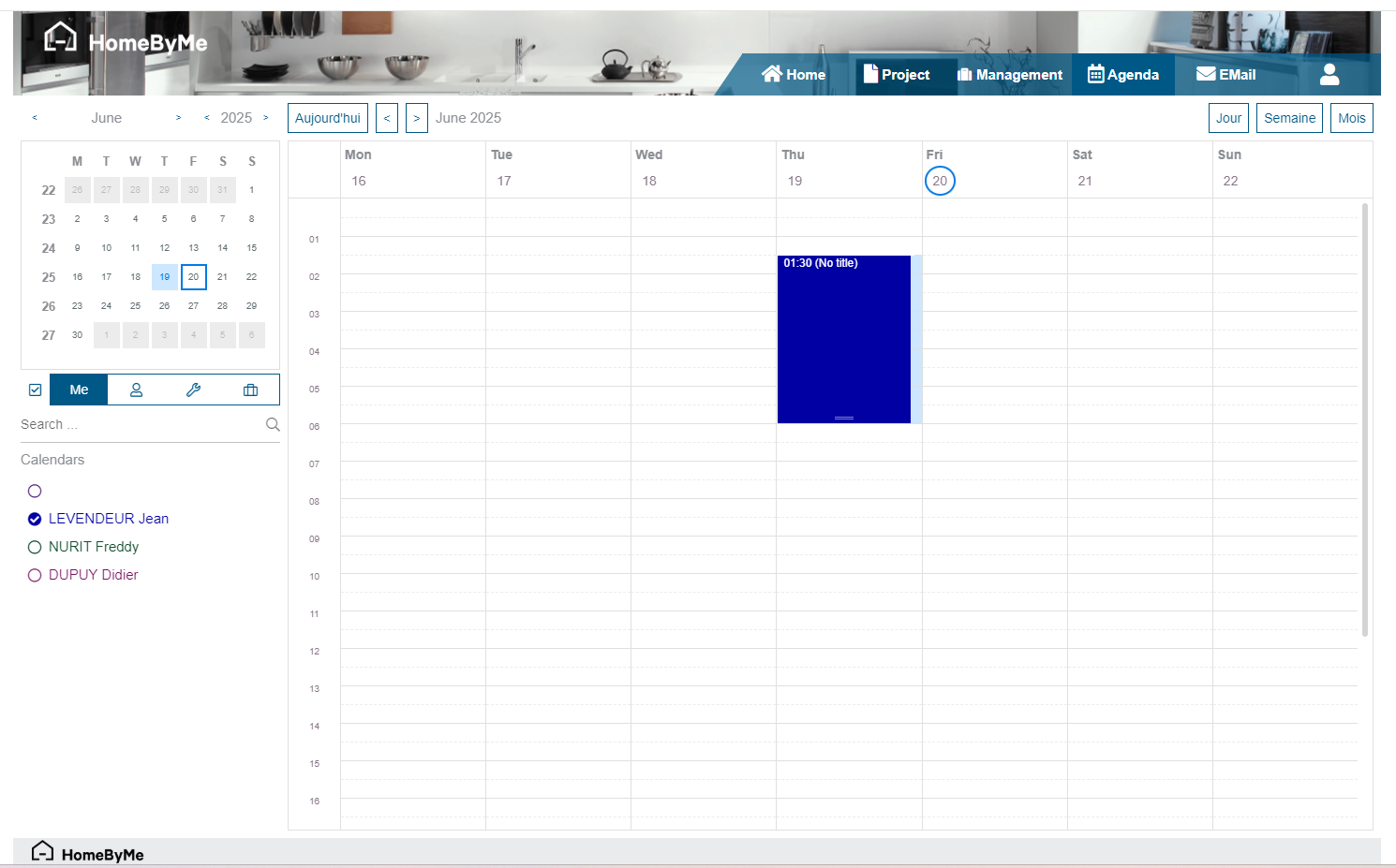 The calendar allows you to view appointments scheduled for all employees. You can view your calendar by day, week or month. The store's various resources are accessible on the left of the screen. A different color is assigned by default to users (this color can be changed from the "My account" menu).